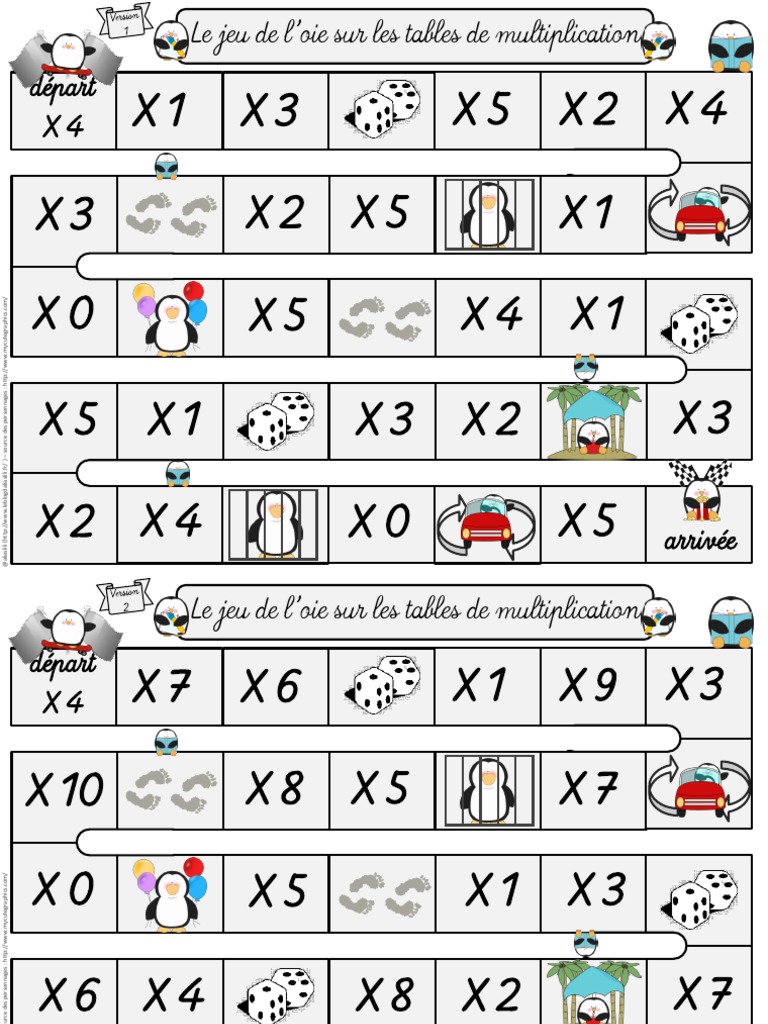 2 Jeux De L Oie Les Tables De Multiplication Aliaslili De Loisirs
