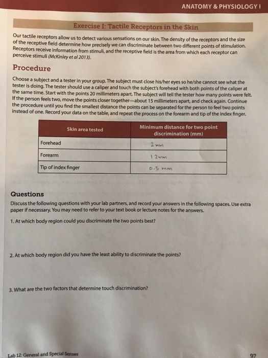 Solved Anatomy Physiology Exercise I Tactile Receptors I